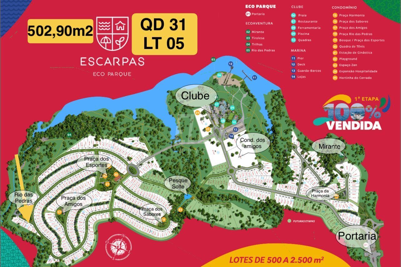 Você que sonha em ter seu próprio pedacinho de terra em um lugar tranquilo e cheio de opções de lazer, olha só essa oportunidade! Temos um terreno de 502.9m² disponível em um condomínio super completo, com campo de futebol, churrasqueira, playground, quadras de areia, tênis e poliesportiva, além de uma portaria 24 horas e ronda motorizada para sua segurança.